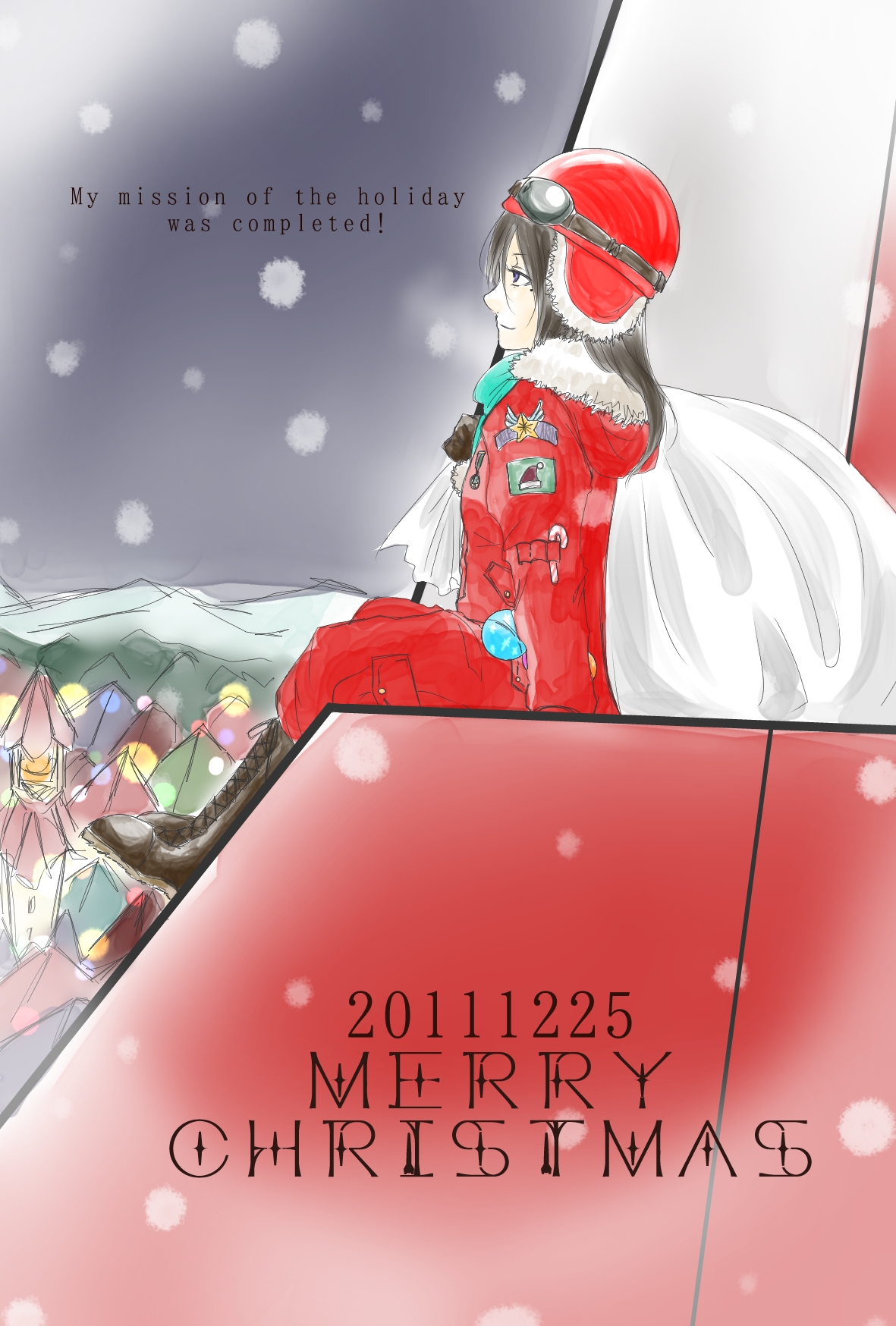 ミッションコンプリート。 去年のアレの続きになっています。クリスマスが爆発した街にクリスマスを取り戻した1体のロボット。その勇姿に感銘を受けた 少女は大人になった今、サンタの仕事をしています。 なんだか●ェルタース●リジナルみたいな話になった。 *お絵かき帳にもどる* *さいしょにもどる*